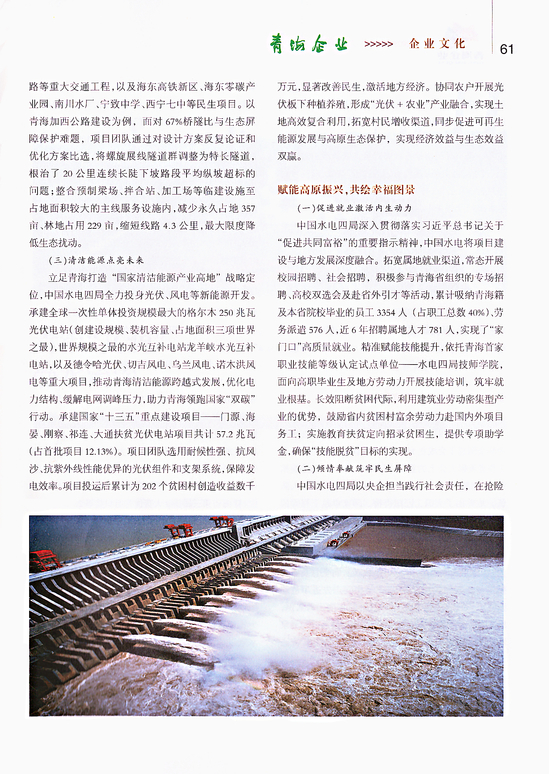 青海,三江之源,中華水塔,巍然屹立于國家生態(tài)安全屏障之巔。在這片壯美與使命交響的雪域高原上,中國水利水電第四工程局有限公司(簡稱“中國水電四局”)作為駐青央企,始終將習(xí)近平總書記系列重要講話精神轉(zhuǎn)化為澎湃的發(fā)展動(dòng)能與堅(jiān)定的行動(dòng)自覺,錨定國家所需,青海所向,胸懷“國之大者”,以高原赤子的情懷與央企的擔(dān)當(dāng),在服務(wù)國家戰(zhàn)略宏圖、建設(shè)現(xiàn)代化新青海的征途上,刻下了堅(jiān)實(shí)而閃光的奮進(jìn)足跡。 一、守護(hù)“中華水塔”,筑牢綠色根基 行動(dòng)詮釋“國之大者”。中國水電四局將“保護(hù)好青海生態(tài)環(huán)境”的政治責(zé)任融入血脈,克服黃河流域地質(zhì)復(fù)雜、施工難度高等挑戰(zhàn),在青海承建龍羊峽、李家峽、拉西瓦、引大濟(jì)湟等數(shù)十項(xiàng)重大水利水電工程,創(chuàng)多項(xiàng)行業(yè)紀(jì)錄,為青海水利事業(yè)奠定堅(jiān)實(shí)基礎(chǔ),也使青海省從全國電力工業(yè)最落后的省份之一,邁向強(qiáng)大的電力能源基地,一躍跨入“大機(jī)組、超高壓”行列,由原來的電能輸入省變?yōu)殡娔茌敵鍪?。近年,中國水電四局在承建的羊曲水電站工程中,積極踐行生態(tài)文明理念,創(chuàng)建綠色示范工地。通過光伏智能制漿站、智慧指揮中心、北斗壓實(shí)系統(tǒng)及“智能監(jiān)管+無人機(jī)巡查”技術(shù)矩陣,嚴(yán)控施工污染;同步實(shí)施灑水抑塵、防塵網(wǎng)覆蓋、光伏發(fā)電、建筑垃圾資源化處理及營地綠化節(jié)能措施,全面落實(shí)“四節(jié)一環(huán)”標(biāo)準(zhǔn),堅(jiān)持做到“少破壞多保護(hù)、少擾動(dòng)多防護(hù)、少污染多防治”。創(chuàng)新修建電站升魚機(jī)系統(tǒng),破解大壩阻隔魚類洄游難題,有效維系上下游生態(tài)平衡與生物多樣性,實(shí)現(xiàn)了工程效益與生態(tài)保護(hù)深度融合。 筑基興產(chǎn)暢通動(dòng)脈。中國水電四局深度參與青海現(xiàn)代化基礎(chǔ)設(shè)施體系建設(shè),承建青海馬平高速、玉樹災(zāi)后重建工程、加西公路等重大交通工程,以及海東高鐵新區(qū)、海東零碳產(chǎn)業(yè)園、南川水廠、寧致中學(xué)、西寧七中等民生項(xiàng)目。以青海加西公路建設(shè)為例,面對(duì)67%橋隧比與生態(tài)屏障保護(hù)難題,項(xiàng)目團(tuán)隊(duì)通過對(duì)設(shè)計(jì)方案反復(fù)論證和優(yōu)化方案比選,將螺旋展線隧道群調(diào)整為特長隧道,根治了20公里連續(xù)長陡下坡路段平均縱坡超標(biāo)的問題;整合預(yù)制梁場(chǎng)、拌合站、加工場(chǎng)等臨建設(shè)施至占地面積較大的主線服務(wù)設(shè)施內(nèi),減少永久占地357畝、林地占用229畝,縮短線路4.3公里,最大限度降低生態(tài)擾動(dòng)。 清潔能源點(diǎn)亮未來。立足青海打造“國家清潔能源產(chǎn)業(yè)高地”戰(zhàn)略定位,中國水電四局全力投身光伏、風(fēng)電等新能源開發(fā)。承建全球一次性單體投資規(guī)模最大的格爾木250兆瓦光伏電站(創(chuàng)建設(shè)規(guī)模、裝機(jī)容量、占地面積三項(xiàng)世界之最),世界規(guī)模之最的水光互補(bǔ)電站龍羊峽水光互補(bǔ)電站,以及德令哈光伏、切吉風(fēng)電、烏蘭風(fēng)電、諾木洪風(fēng)電等重大項(xiàng)目,推動(dòng)青海清潔能源跨越式發(fā)展,優(yōu)化電力結(jié)構(gòu)、緩解電網(wǎng)調(diào)峰壓力,助力青海領(lǐng)跑國家“雙碳”行動(dòng)。承建國家“十三五”重點(diǎn)建設(shè)項(xiàng)目——門源、海晏、剛察、祁連、大通扶貧光伏電站項(xiàng)目共計(jì)57.2兆瓦(占首批項(xiàng)目12.13%)。項(xiàng)目團(tuán)隊(duì)選用耐候性強(qiáng)、抗風(fēng)沙、抗紫外線性能優(yōu)異的光伏組件和支架系統(tǒng),保障發(fā)電效率。項(xiàng)目投運(yùn)后累計(jì)為202個(gè)貧困村創(chuàng)造收益數(shù)千萬元,顯著改善民生,激活地方經(jīng)濟(jì)。協(xié)同農(nóng)戶開展光伏板下種植養(yǎng)殖,形成“光伏+農(nóng)業(yè)”產(chǎn)業(yè)融合,實(shí)現(xiàn)土地高效復(fù)合利用,拓寬村民增收渠道,同步促進(jìn)可再生能源發(fā)展與高原生態(tài)保護(hù),實(shí)現(xiàn)經(jīng)濟(jì)效益與生態(tài)效益雙贏。 二、賦能高原振興,共繪幸福圖景 促進(jìn)就業(yè)激活內(nèi)生動(dòng)力。中國水電四局深入貫徹落實(shí)習(xí)近平總書記關(guān)于“促進(jìn)共同富?!钡闹匾甘揪?,中國水電將項(xiàng)目建設(shè)與地方發(fā)展深度融合。拓寬屬地就業(yè)渠道,常態(tài)開展校園招聘、社會(huì)招聘,積極參與青海省組織的專場(chǎng)招聘、高校雙選會(huì)及赴省外引才等活動(dòng),累計(jì)吸納青海籍及本省院校畢業(yè)的員工3354人(占職工總數(shù)40%)、勞務(wù)派遣576人,近6年招聘屬地人才781人,實(shí)現(xiàn)了“家門口”高質(zhì)量就業(yè)。精準(zhǔn)賦能技能提升,依托青海首家職業(yè)技能等級(jí)認(rèn)定試點(diǎn)單位——水電四局技師學(xué)院,面向高職畢業(yè)生及地方勞動(dòng)力開展技能培訓(xùn),筑牢就業(yè)根基。長效阻斷貧困代際,利用建筑業(yè)勞動(dòng)密集型產(chǎn)業(yè)的優(yōu)勢(shì),鼓勵(lì)省內(nèi)貧困村富余勞動(dòng)力赴國內(nèi)外項(xiàng)
