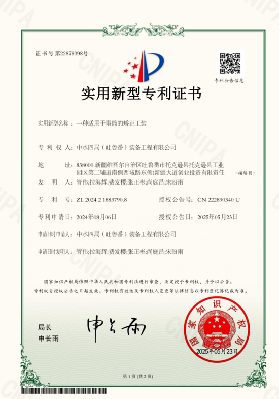 近日,新疆分公司申報(bào)的實(shí)用新型專利《一種適用于塔筒的矯正工裝》喜獲國(guó)家知識(shí)產(chǎn)權(quán)局授權(quán)。 《一種適用于塔筒的矯正工裝》適用于塔筒的矯正工裝技術(shù)領(lǐng)域。風(fēng)電塔筒在生產(chǎn)過程中,由于卷圓設(shè)備不良、卷圓操作不當(dāng)、噴砂滾輪放置不到位以及吊運(yùn)、儲(chǔ)存、運(yùn)輸過程中的碰撞等因素,筒體容易出現(xiàn)凹陷缺陷。為克服現(xiàn)有技術(shù)的不足,設(shè)計(jì)研究了該工裝,該工裝包括固定基板、弧形限位板、轉(zhuǎn)動(dòng)把手、移動(dòng)鉸接座等,相對(duì)于傳統(tǒng)處理方式擁有矯正精準(zhǔn)便于加工、結(jié)構(gòu)穩(wěn)固限位可靠、防止損壞塔筒、適配性強(qiáng)等優(yōu)點(diǎn)。 后續(xù),新疆分公司將繼續(xù)秉持創(chuàng)新驅(qū)動(dòng)發(fā)展戰(zhàn)略,加大在相關(guān)技術(shù)領(lǐng)域的研發(fā)投入,不斷探索新技術(shù)、新工藝、新工裝。同時(shí),分公司也將加強(qiáng)知識(shí)產(chǎn)權(quán)保護(hù)和技術(shù)成果轉(zhuǎn)化,讓創(chuàng)新成果更好地服務(wù)于生產(chǎn)實(shí)踐,創(chuàng)造更大的經(jīng)濟(jì)價(jià)值和效益。