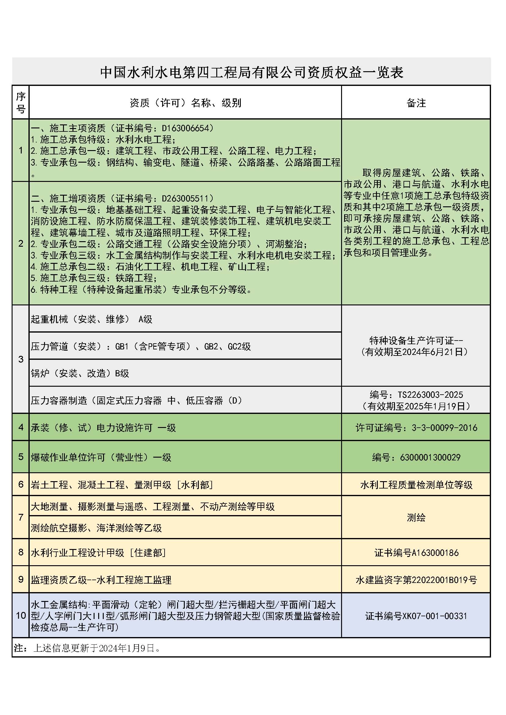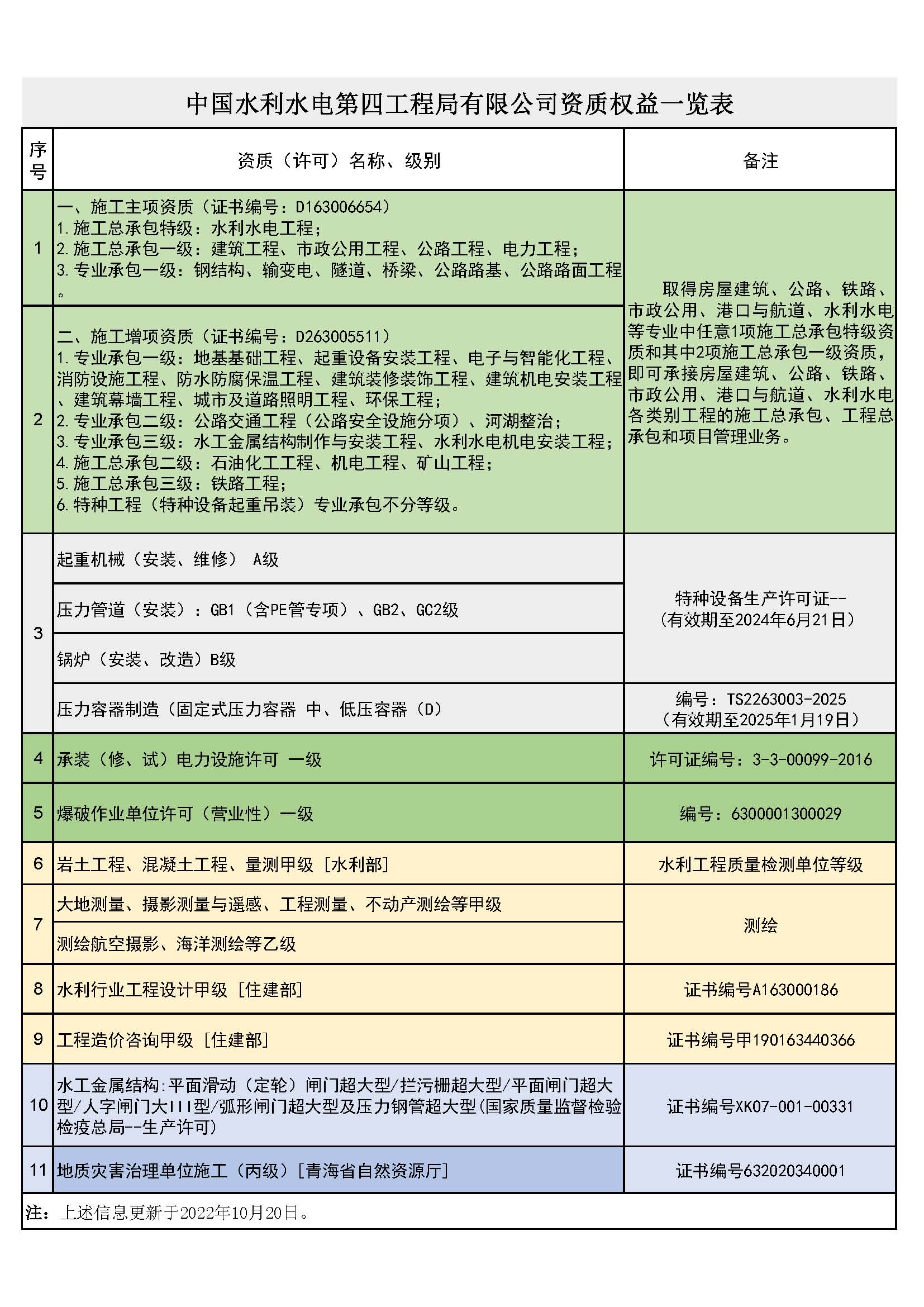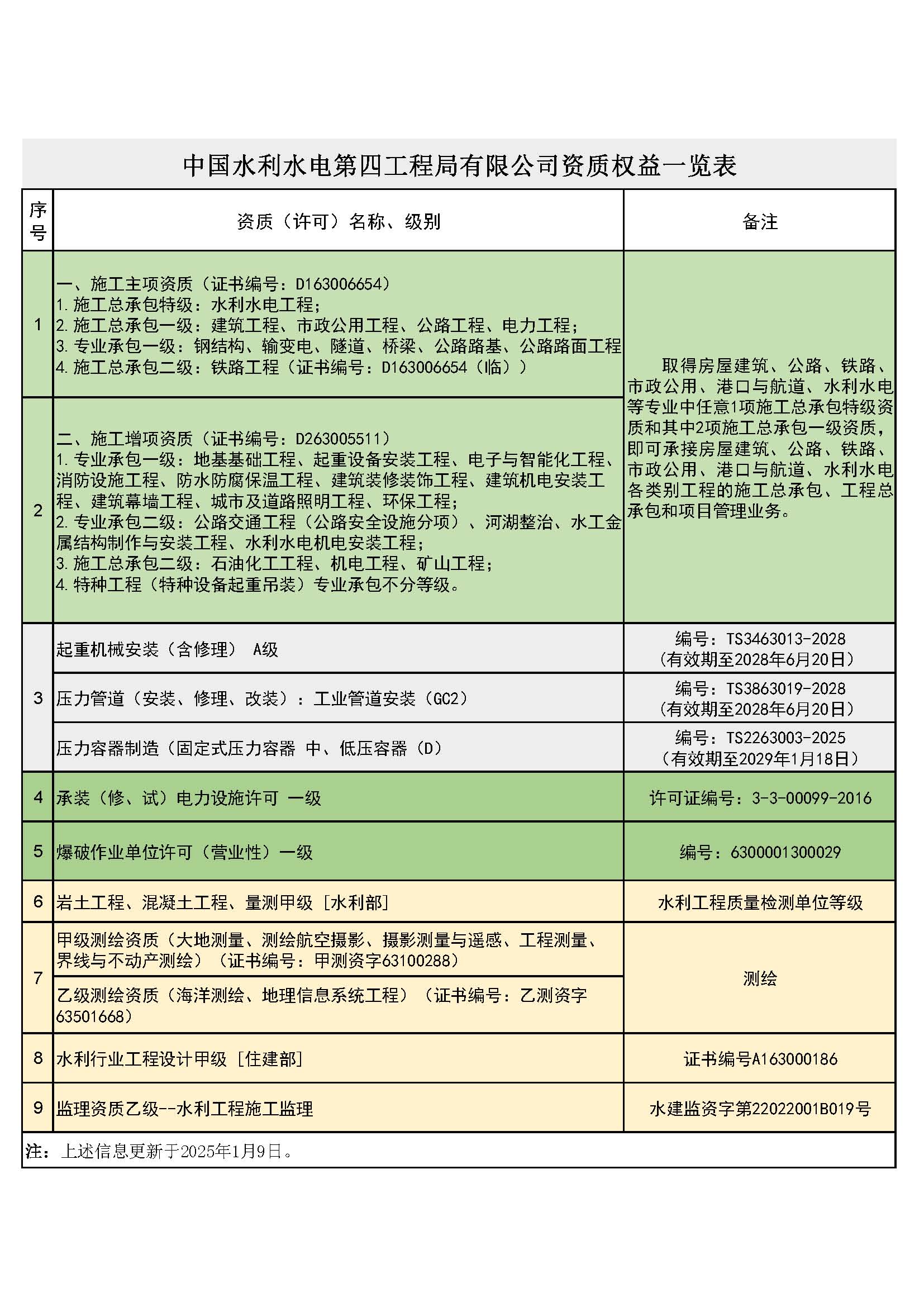 資質(zhì)列表